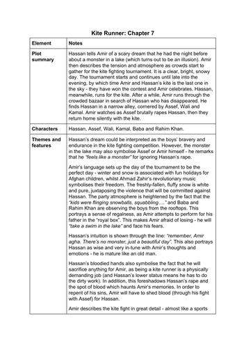 The Kite Runner Chapter 7 Summary And Analysis A Level English Lang And Lit Teaching Resources